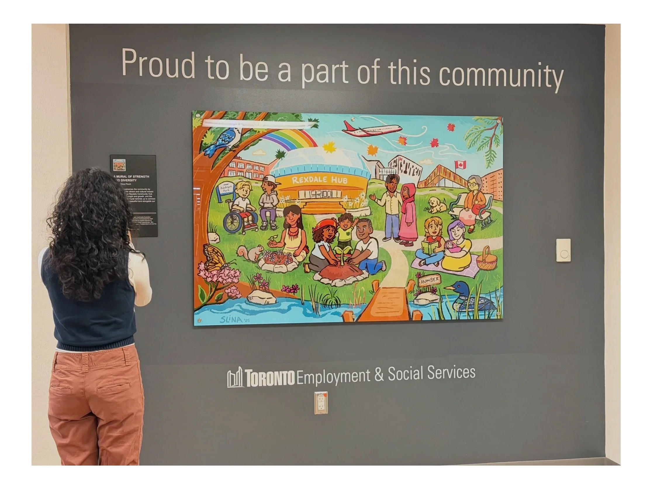 Brief: The Rexdale Employment & Social Services Centre (RESS), a division of City of Toronto’s Employment & Social Services, aims to welcome visitors and newcomers by livening up the front entrance wall space with custom artwork.